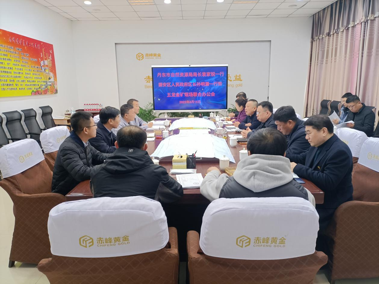 3月15日,丹東市自然資源局局長袁家銳、副局長王會,會同振安區(qū)人民政府區(qū)長孫明灝帶領(lǐng)相關(guān)科室人員一行16人到五龍礦業(yè)召開現(xiàn)場辦公會。五龍礦業(yè)總經(jīng)理劉金、總工程師邱海成參加了會議。